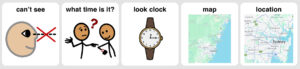 Keeping a map open on your phone / iPad when you are talking about what you are doing for things outside of the house can help build up knowledge over time for everyone in the house’s schedule.